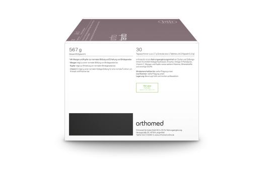 Orthomac ist ein Nahrungsergänzungsmittel mit Vitaminen, Spurenelementen, sekundären Pflanzenstoffen und essenziellen Fettsäuren.