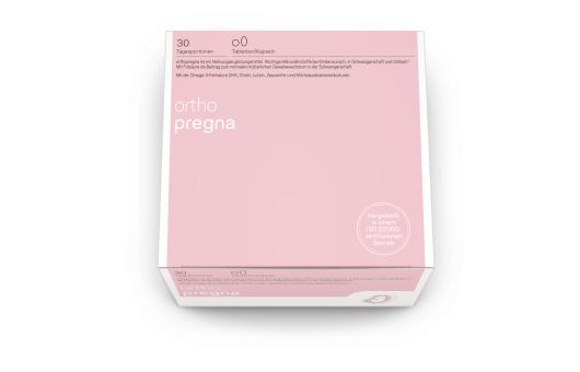 Orthopregna ist ein Nahrungsergänzungsmittel mit Vitaminen, Mineralstoffen, Spurenelementen, sekundäre Pflanzenstoffe, essenzielle Fettsäuren und Probiotika.